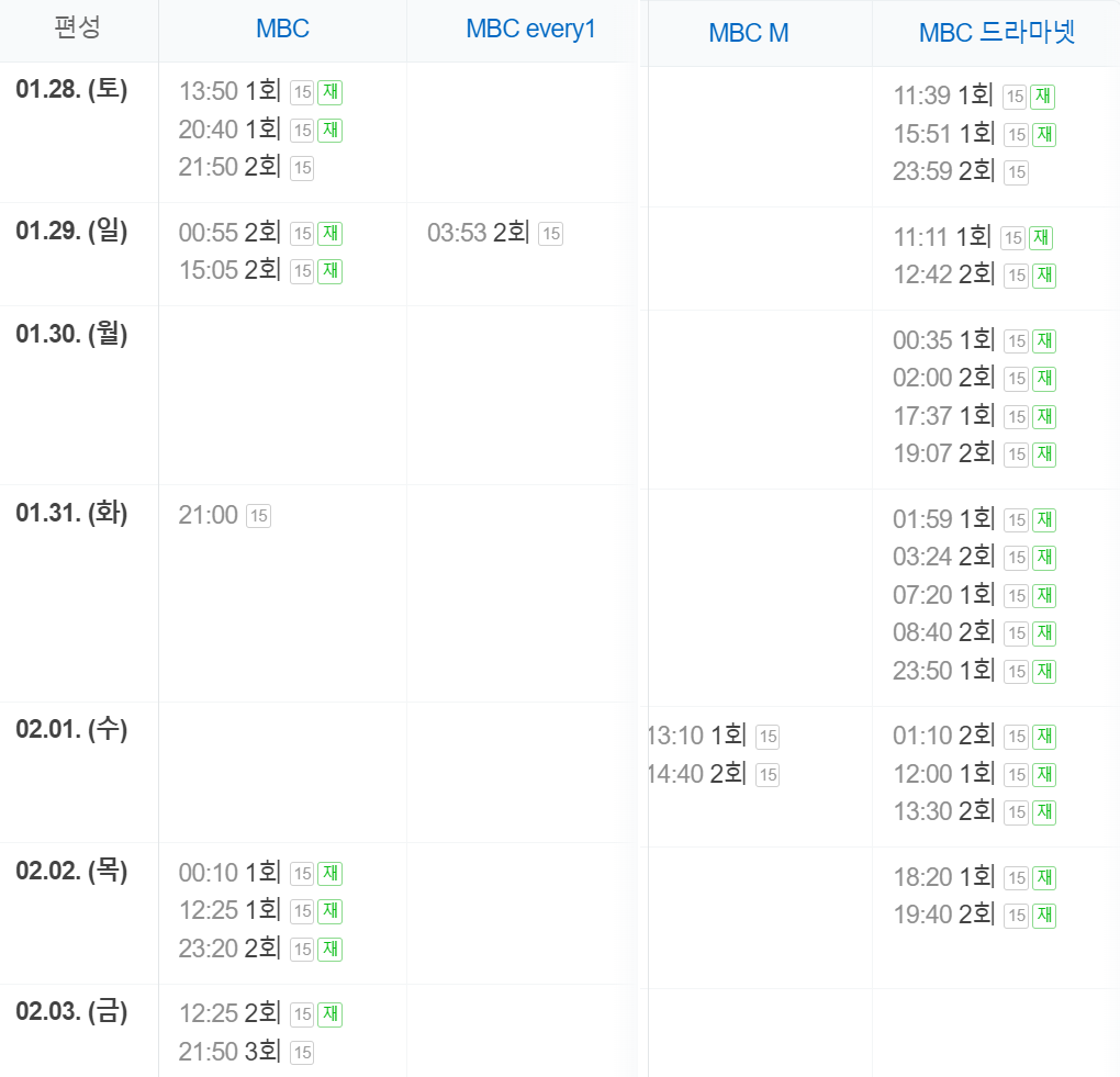 재방송은 MBC, MBC every1, MBC M, MBC 드라마넷에서만 하고 있네요.