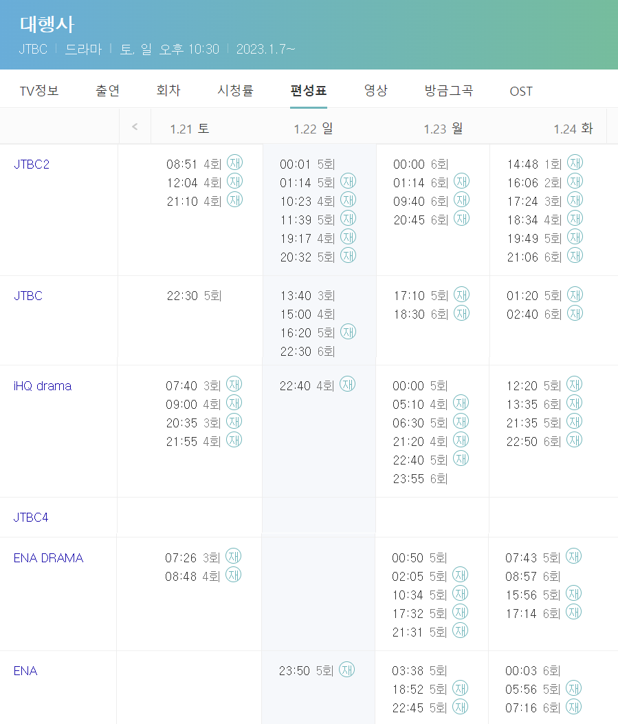 JTBC4에서는 따로 재방송하고 있지 않네요.